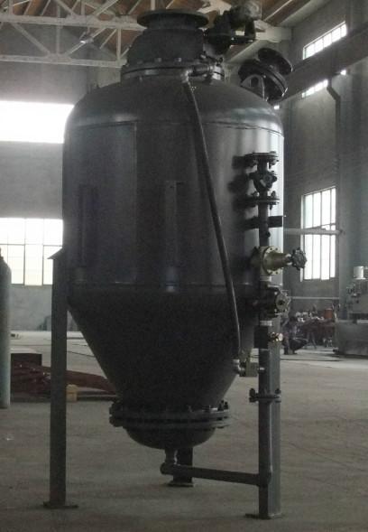 銳馳倉(cāng)式泵是在高壓下輸送粉狀物料的一種比較可靠的密相動(dòng)壓氣力輸送裝置。倉(cāng)式泵的卸料方式有兩種,其中底部出料是最常用方式,罐內(nèi)物料通過(guò)圓錐面充氣槽充氣、噴嘴噴氣或其它方法得以流態(tài)化;在底部設(shè)置流態(tài)化充氣板(層)可使物料在罐的上部卸出。輸送氣體在罐中不同輸入平面上分布情況取決于輸送物料性質(zhì)。